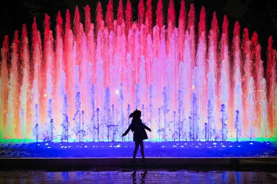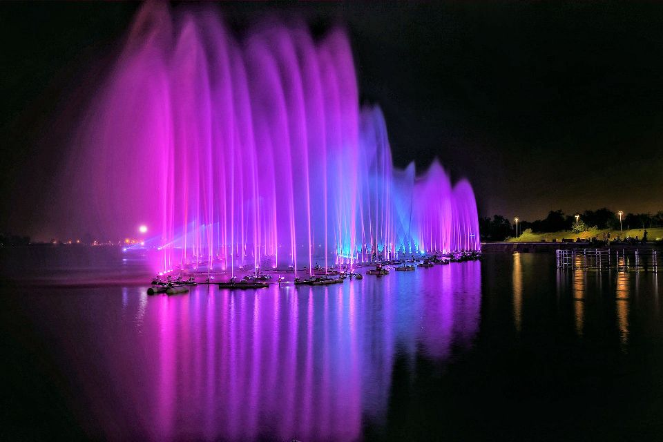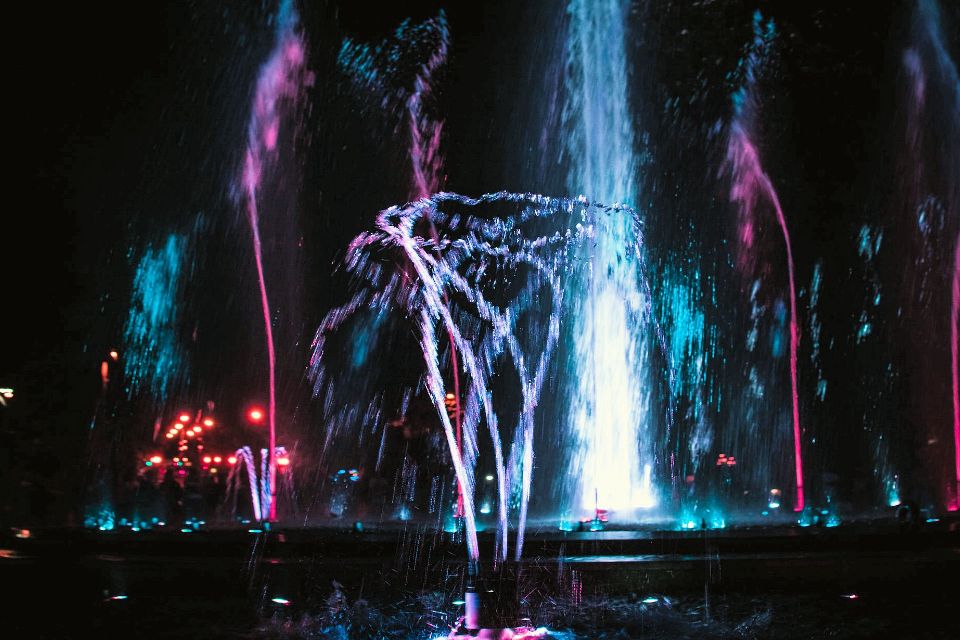 A musical fountain, also known as a dancing fountain, is a type of animated fountain for entertainment purposes that creates an aesthetic designs of water controlled by DMX Control Systems. This is achieved by employing the effects of timed sound waves and timed light (including laser) against water particles. The water refracts and reflects the light, and in doing so, three-dimensional images can be produced in water shows.